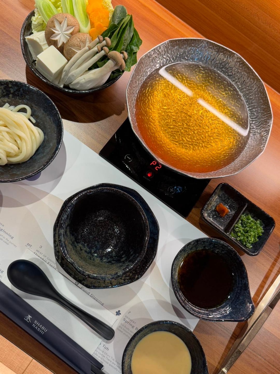 Just went to Shabu Nashi and tried their lunch set with chuck eye roll. Honestly, for the price it was a really good deal — you get a decent portion of beef, fresh veggies, dipping sauces, and your own hotpot. The chuck eye roll was nicely marbled, tender once it cooked in the broth, and paired well with the sesame sauce.
