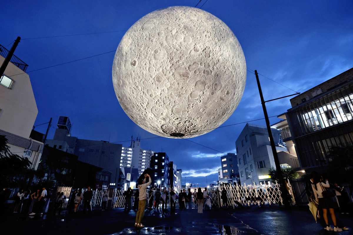 Works by artists from Japan and abroad include a 7-meter-wide moon-shaped object based on photographs of the lunar surface. Some exhibits charge admission fees. The event runs through Sunday.