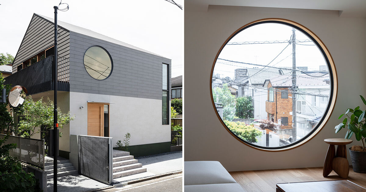 The living room on the upper floor features a circular window on its eastern side, welcoming the morning sun. Natural light casts a circular pattern on the floor, shifting throughout the day. The south-facing, horizontal window, reminiscent of traditional Japanese shoji screens, maximizes the incorporation of the park’s green scenery into the living space. Afternoon light illuminates the living spaces through a skylight set into the pitched roof. Furthermore, a tall, vertical window piercing the second-floor flooring brightens the vertical circulation space within the staircase connecting the upper and lower floors.