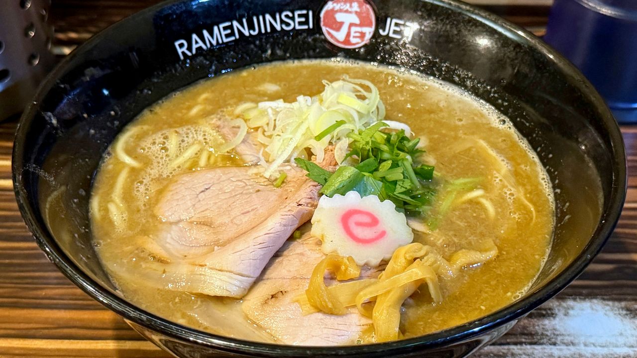 Long lines are a sure sign that a ramen shop is doing something right, and the lines at Ramen Jinsei Jet, in Osaka’s main noodle battleground around Fukushima Station, let diners know that the bowls here are worth the wait.