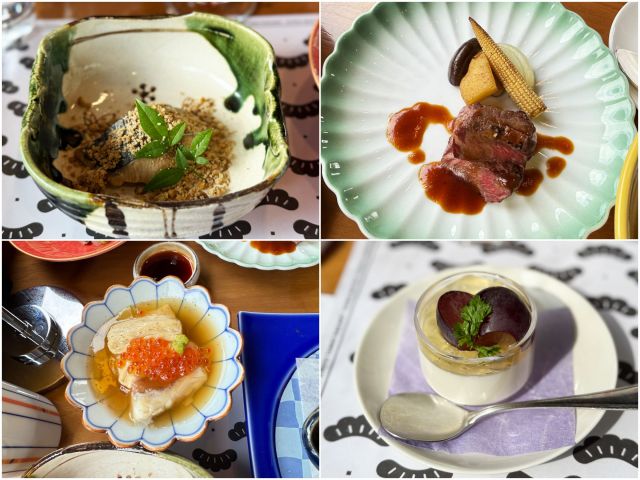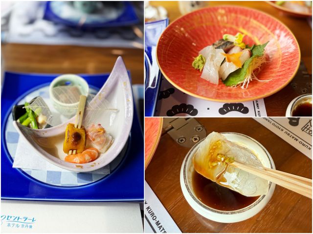 Other dishes included Yuan-yaki (a style of grilled or broiled fish marinated in a yuzu-citrus soy sauce), Toji-mushi (steamed dishes using yuba [tofu skin], named after Toji, a famous temple in Kyoto connected with yuba production), and a high-quality local wagyu steak. Every dish is prepared and presented with attention to detail and carefully plated with exquisite tableware to honour the beauty of Kyoto-style cuisine.