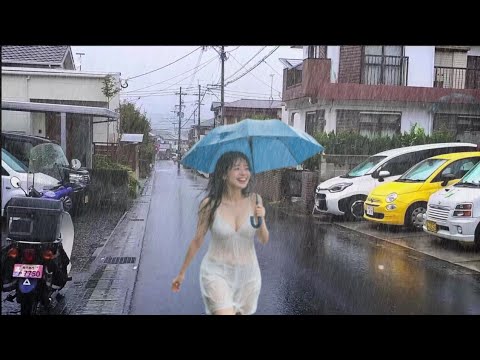 A walk in the pouring rain in Kagoshima, Japan | Nature for a relaxing city atmosphere