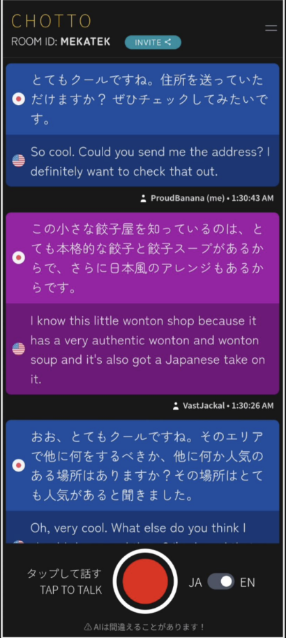 Although Chotto.chat has not yet officially launched its app, it already attracts over 6,000 users daily, with an average session time of 27 minutes per person. It’s not only useful for shopping and ordering food; it can also be used between couples and friends from different cultures, allowing them to communicate naturally in their native languages.