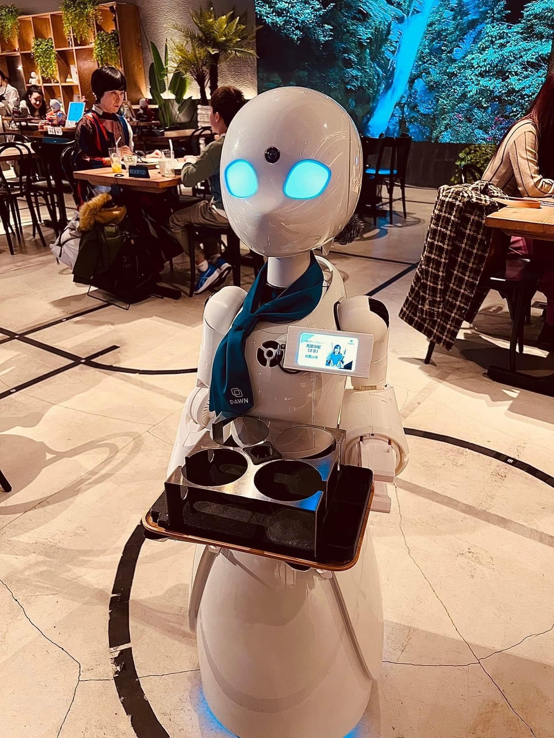 DAWN cafe in Tokyo has robots with screens connecting you with people who have difficulty going out due to health reasons. These folks remotely operate robots from their homes or hospitals and you can have a little chat with them while you wait for your coffee. I think it’s a great and compassionate project, fighting against loneliness for people with disabilities! 💙 #compassion