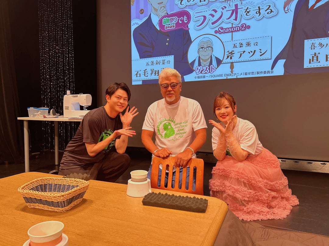 The Gojou Family: Ishige Shouya (Gojou Wakana), Suguta Hina (Kitagawa Marin) and Ono Atsushi (Gojou Kaoru) at the “That Cosplay Doll Does Radio at the Onsen Festival Too” public recording event