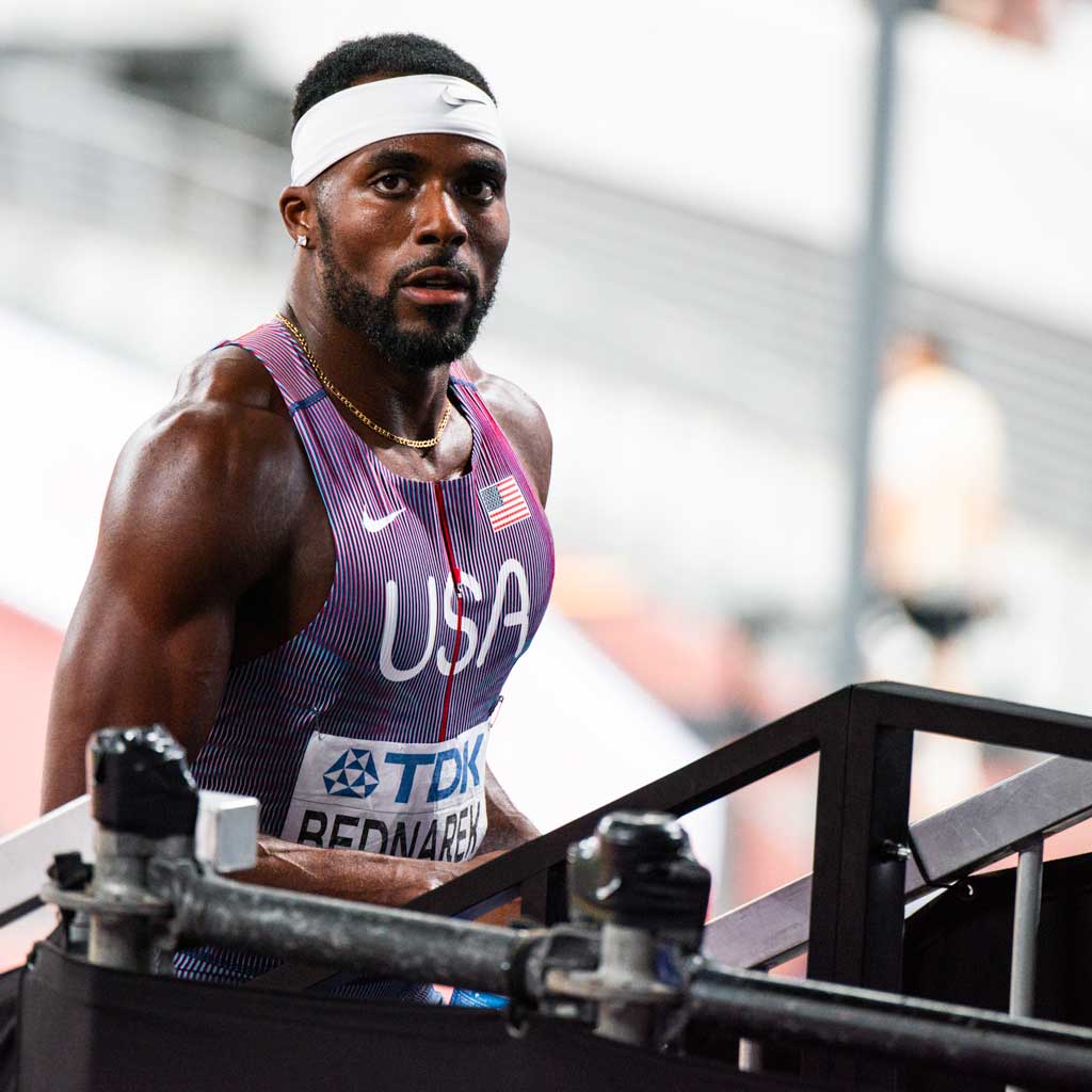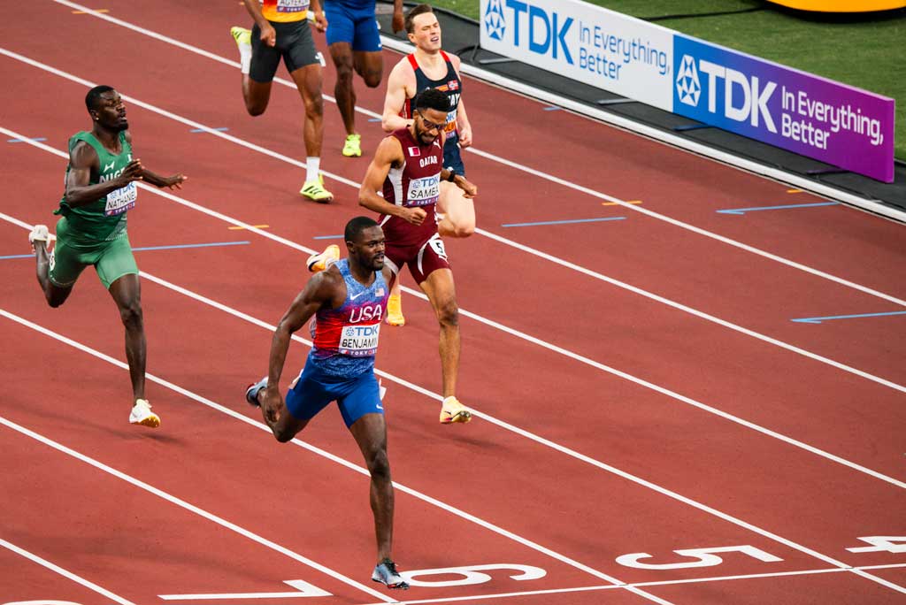 Rai Benjamin took gold in the 400m hurdles in Tokyo! photo by Brian Eder for RunBlogRun