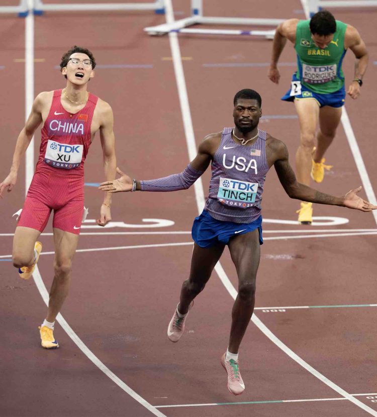 Cordell Tinch made his dream a reality in Tokyo, dominating the 110m hurdles in 12.99, the only sub-13-second time of the final. Cordell had been leading the world in the 110m hurdles since April 2025, when he ran a 12.87. In the rain in Lausanne, Cordell ran a 12.98, and in the humidity of Tokyo, Cordell Tinch took his first gold, giving the US four straight golds in the 110m hurdles (Grant Holloway, 2019, 2022, 2023), and Cordell Tinch in 2025!