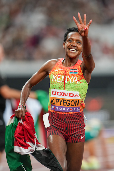 Beatrice Chebet takes the Women’s 5,000m, Tokyo WCH 2025, photo by World Athletics