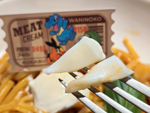 This creative Pokémon grouping sits at the top of a mound of pasta with a meat cream sauce containing three types of mushrooms, minced meat, and potatoes. The potatoes are chunkier than expected, giving the dish a satisfying mouthfeel, enhanced by the use of freshly made pasta.