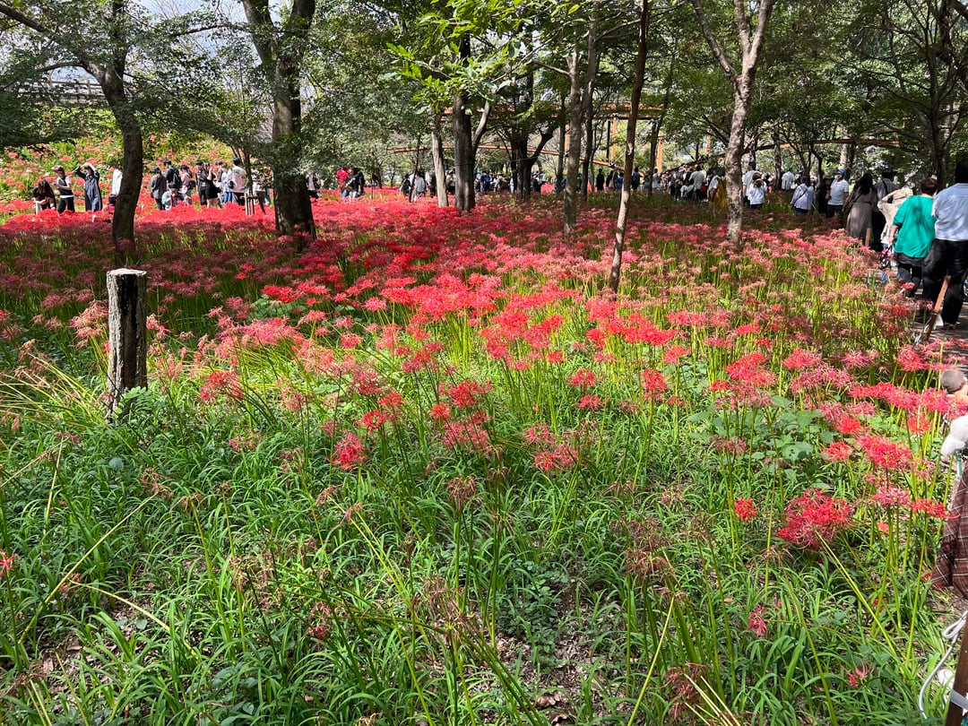Between roughly mid-September/early October each year a place in Saitama prefecture outside of Tokyo called Kinchachuda comes alive with roughly 5 million Lycoris Radiata (aka Spider Lilies) on both sides of the Koma river, and during that time the town of Koma throws a nifty little festival with foods from local farmers and producers. Such as green tea of various varieties from the fields of Sayama and Iruma, chestnuts from Hidaka and freshly prepared mochi dango wrapped with local mikan oranges.