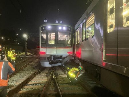 Tokyo, Oct. 6 (Jiji Press)–A local train collided with a parked train at Kajigaya Station in Kawasaki, Kanagawa Prefecture, south of Tokyo, shortly past 11 p.m. Sunday.