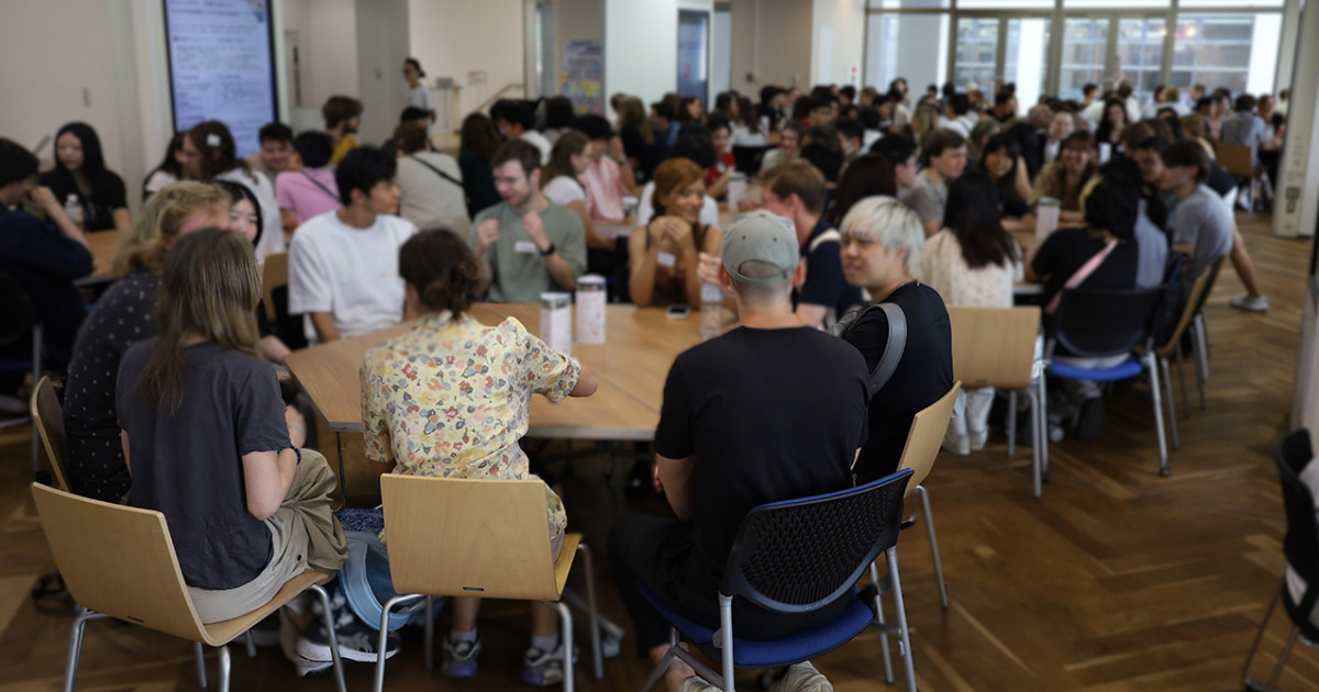 The approximately 167 participants — about 152 from partner universities and 15 from KyotoU — rotated seats every 10 minutes to speak with as many people as possible.