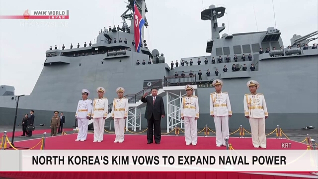 North Korean leader Kim Jong Un has inspected a new type of destroyer and stressed his intention to build up his country’s naval strength.