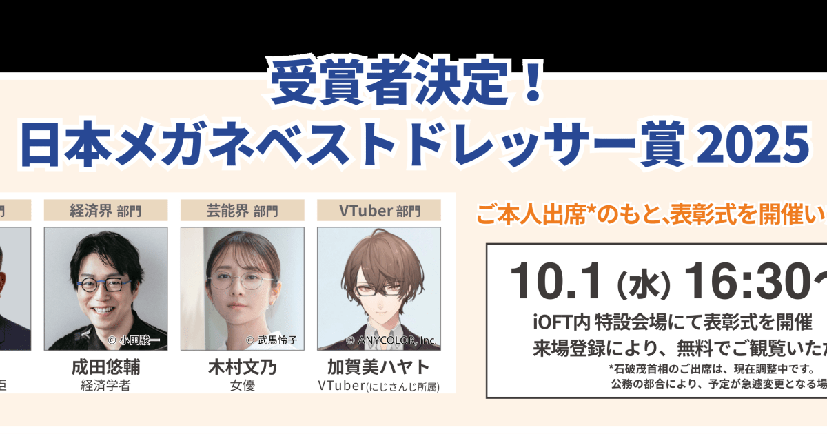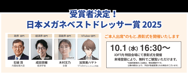 Ishiba attended the Japan Best Dressed Eyes Award ceremony in Ariake, Tokyo, alongside fellow winners actress Fumino Kimura, economist Yusuke Narita, and VTuber Hayato Kagami. In his acceptance speech, Ishiba remarked, “This is an unexpected award. Sometimes good things do happen in life.” He then modeled several pairs of glasses that he won as part of his award, with the floating sunglasses being a particular standout.