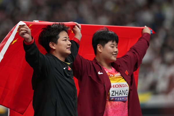 Jiale Zhang, CHN, bronze, Zhao Jie, CHN, silver, W hammer throw, Tokyo 2025, photo by World Athletics