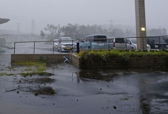 This phote taken on Oct. 9, 2025 shows Hachijo on Hachijo Island, south of Tokyo, where a special heavy rain warning was issued by the Japan Meteorological Agency with Typhoon Halong approaching. (Kyodo)