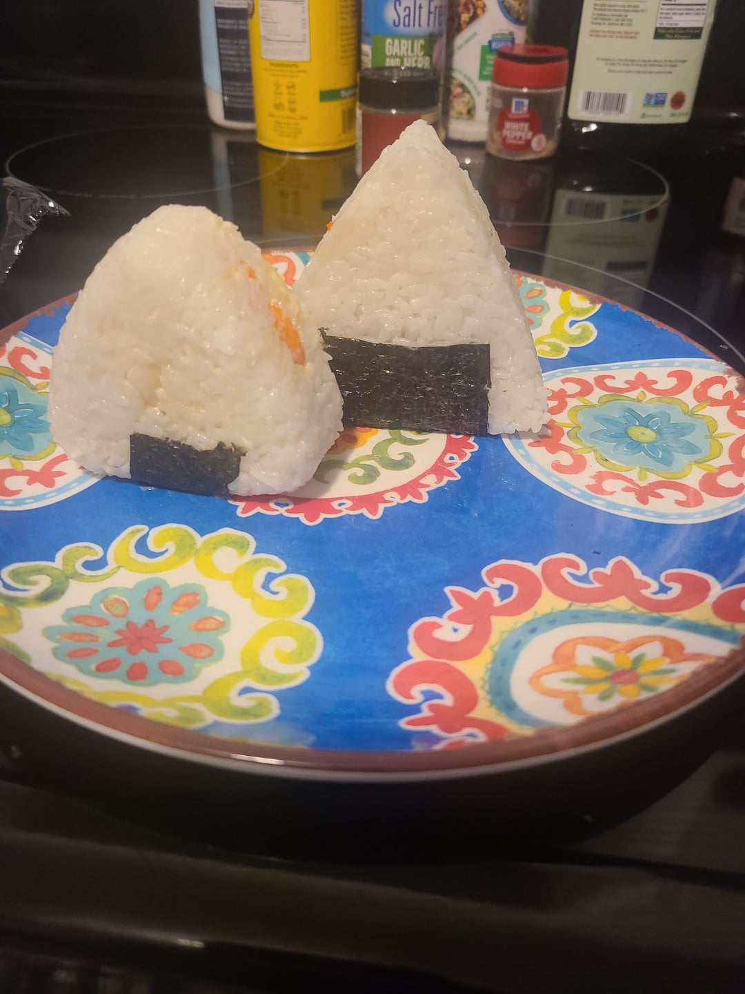 Made onigiri with a spicy immitation crab filling instead of tuna cause it's what I had on hand. I love the molds that I used to make these with! I've molded onigiri by hand before and they don't turn out consistent and they don't have the clean edges.