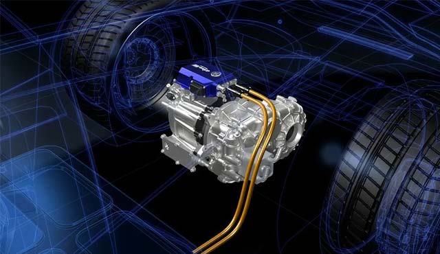 This electric drive unit currently under development for automotive applications is aimed at future supply to carmakers. It employs a 3-in-1 structure integrating the motor, inverter, and gearbox, and delivers high output while remaining light weight and compact.