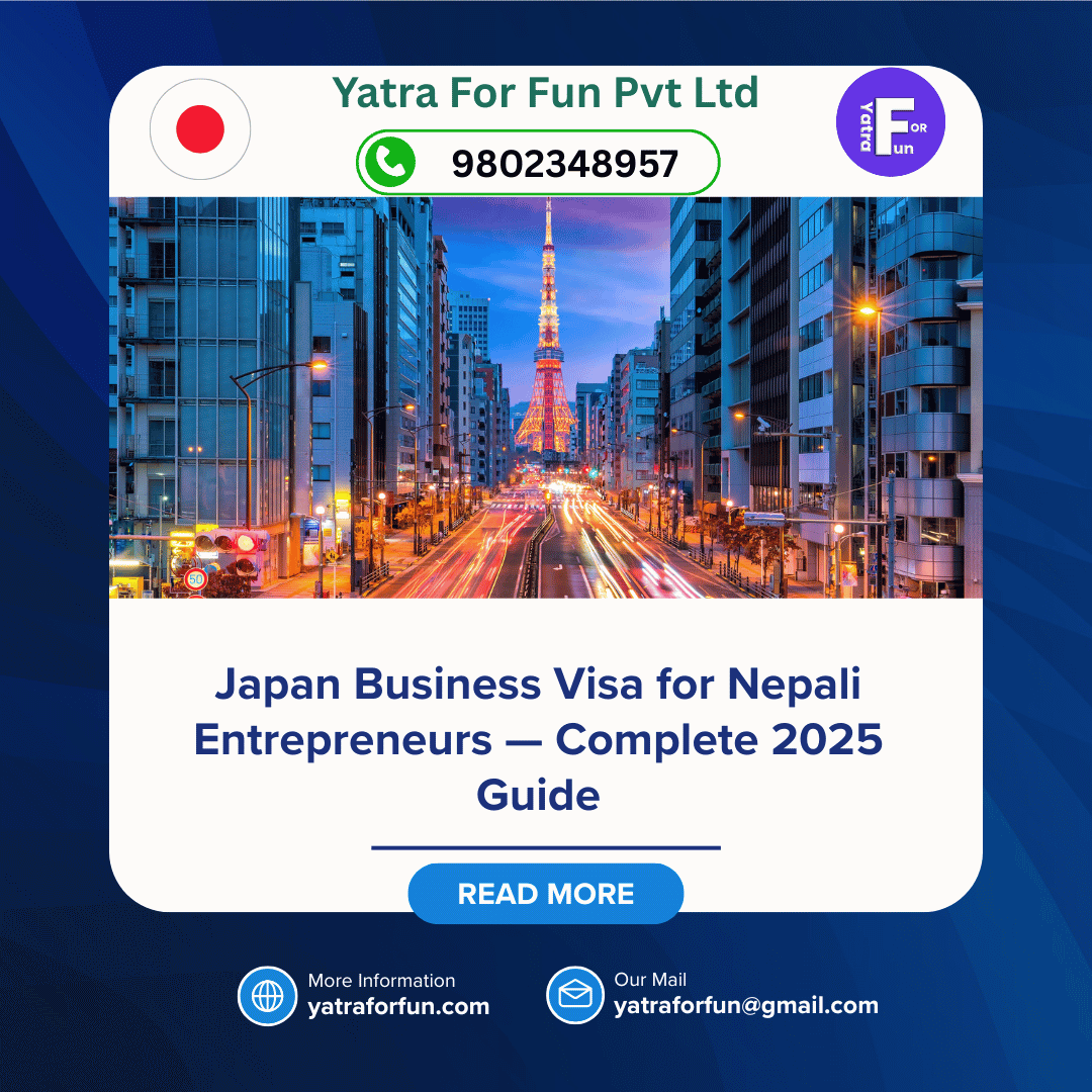 For professional help with business visa documentation, appointment scheduling, and invitation coordination, Yatra for Fun Pvt. Ltd., one of Nepal’s top-rated travel and visa assistance agencies, provides complete visa support for Japan and over 70 other countries. Their expert consultants assist with document review, invitation letter coordination, financial proof verification, translation, and submission via VFS Global.