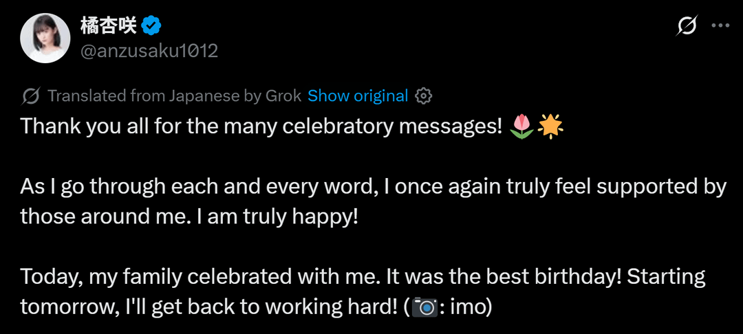 Tachibana Azusa Saying Thanks for All the Birthday Wishes🌷🌟