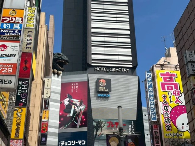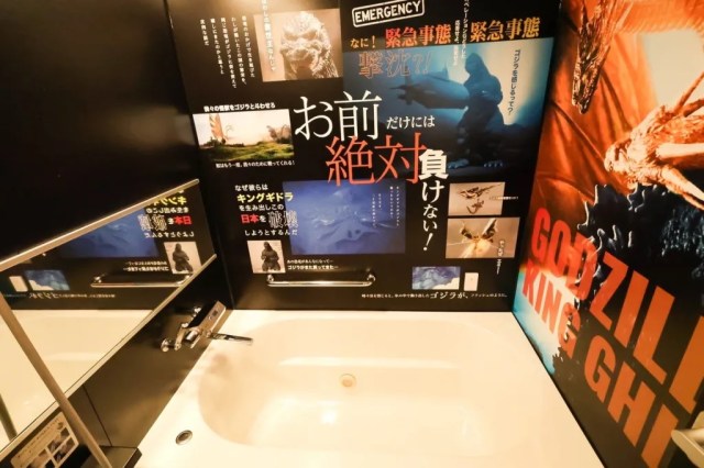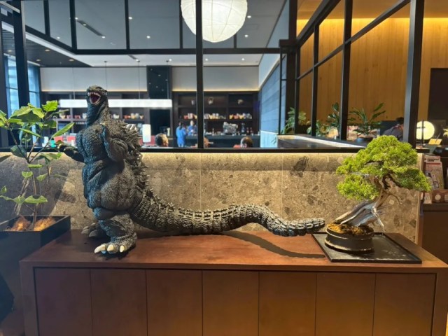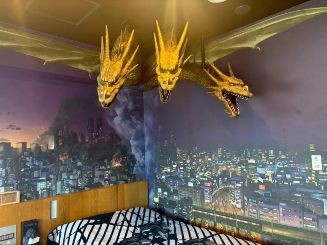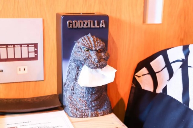 Since the hotel’s opening in 2015, Godzilla himself has been popping out of the the building, with his head at the same height as it would be per his size in 1992’s Godzilla vs. Mothra. That’s not the only treat for kaiju fans, either. Step off the elevator on the 8th floor to enter the lobby, and you’ll find what almost feels like a mini museum, with Godzilla figurines, dioramas, and a movie poster retrospective on display.