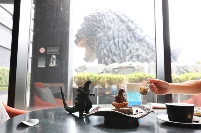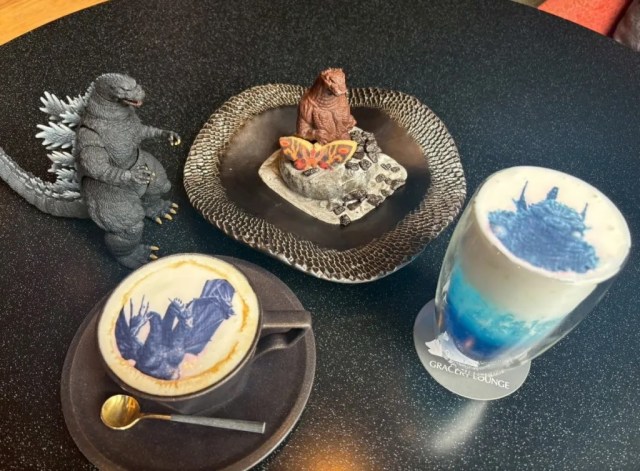The art latte and art peach lemonade soda are tempting, but the most eye-catching of the bunch is the “Godzilla vs. Mothra Decisive Battle at Pancake Island.”