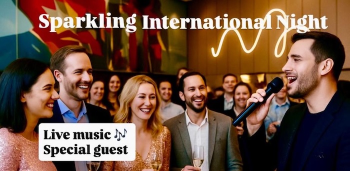 Along with the performance, you’ll enjoy a warm and welcoming atmosphere filled with conversation, laughter, and meaningful connections. Meet people from around the world, share stories, and experience a sparkling night that blends cultural exchange with live entertainment.