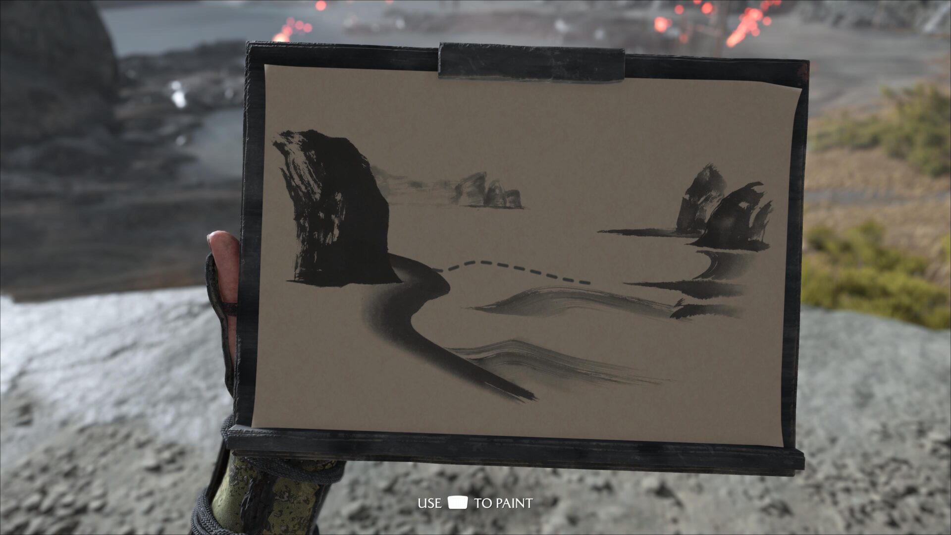Ghost of Yōtei cleverly incorporates the use of the touchpad on the PS5 DualSense controller for sumi-e painting. SCREENSHOT: Yap Hui Bin