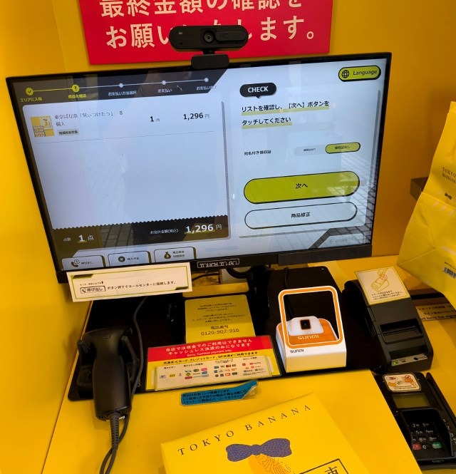 By the time Mr. Sato walked to the register, his items were already rung in, and he didn’t need to scan anything. It was just a matter of confirming the items and pressing “next” to pay for them.