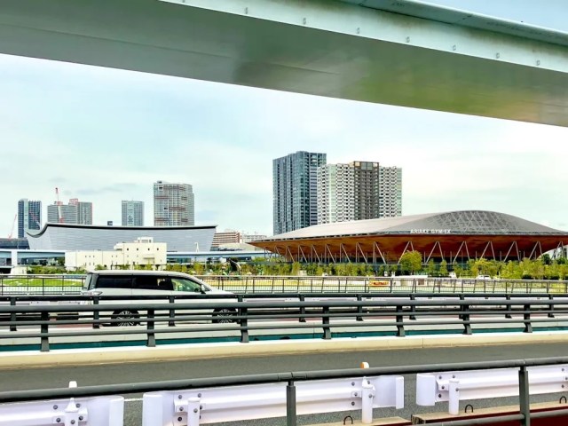 After making this turn, we keep walking and can see Ariake Arena off to our left…