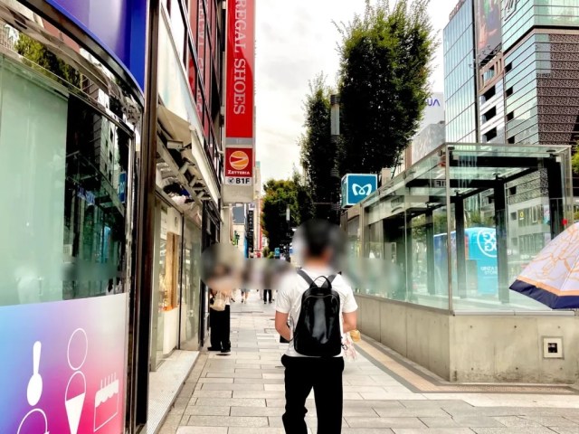 The Yurakucho subway station is underground, but you can spot the stylized “M” mark of the Tokyo Metro at the top of the entrance stairs.