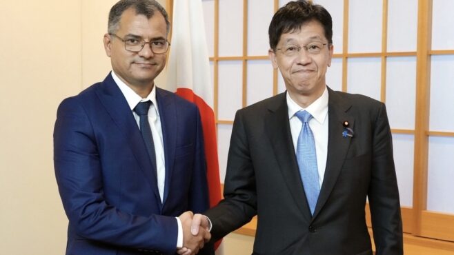 TOKYO: El-Mabrouk Aounallah, the Chief of Staff to Tunisia’s Minister of Health, paid a courtesy call on Japan’s Parliamentary Vice-Minister for Foreign Affairs MATSUMOTO Hisashi on Friday as the two countries look to strengthen cooperation in the health and medical fields.
