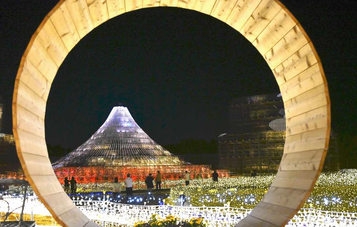 The illumination features a 35-meter-high installation of Mt. Fuji, illuminated with multiple LED colors. It depicts scenes evoking the images of Japan as the “land of gold,” as well as the four seasons.