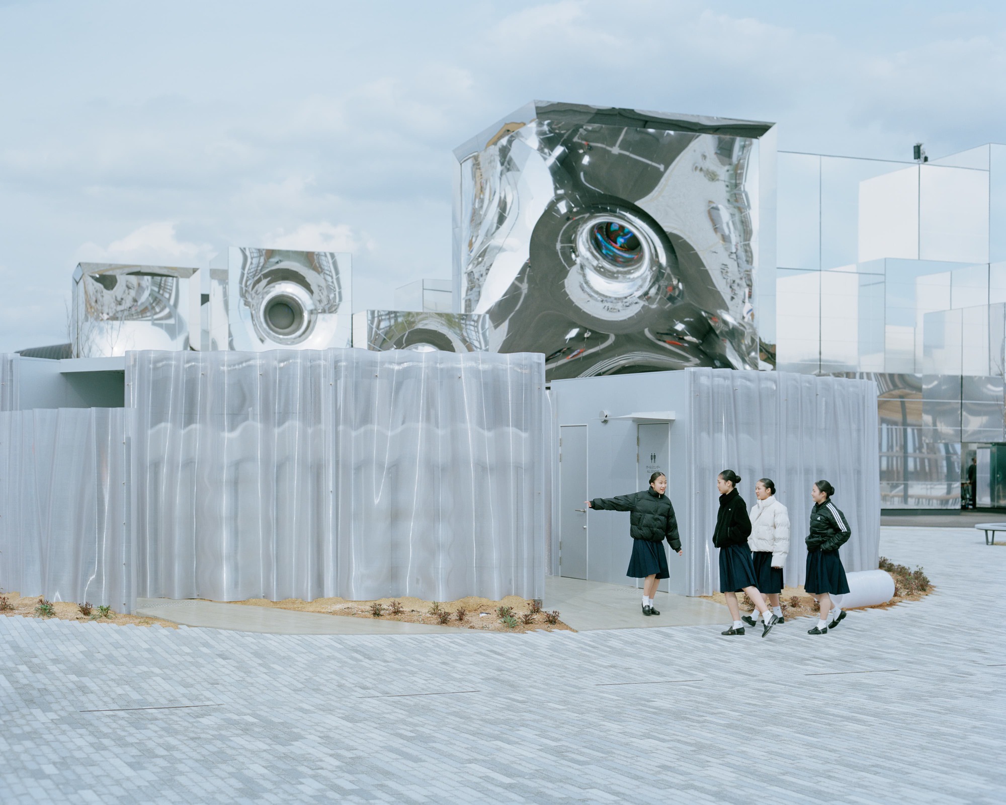 Text description provided by the architects. This project is a public restroom for the EXPO 2025. In response to the context of a plaza surrounded by iconic architectural landmarks, this structure was conceived not as a clearly defined form, but as something that recedes into the background—an architecture that allows only the phenomena of its surroundings to come into focus.