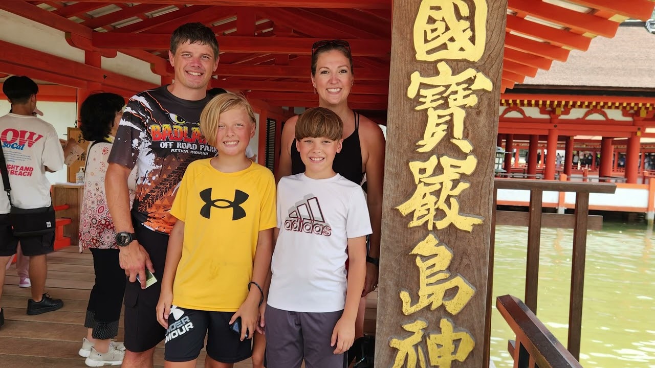 We arrived in Hiroshima, Japan, a city known for its resilience and peaceful spirit. Our day started with lunch. After lunch, we visited the atomic bomb dome in Hiroshim in the Hiroshima Peace Memorial Park. [Music] To finish our day, we took a short ferry to Maram Marajama Island, home to the stunning Ikashimi Shrine and its world famous floating Tori Gate. Hiroshima is a city that honors its past while embracing the present. Peaceful, inspiring, and full of life. [Music] So, what did you do, Mason? Huh? What’d you do? You left your bad luck here. Oh, yeah. [Music] Yeah, you found the chocolate. Is it good? Please like and subscribe. Thank you for watching. Bye.