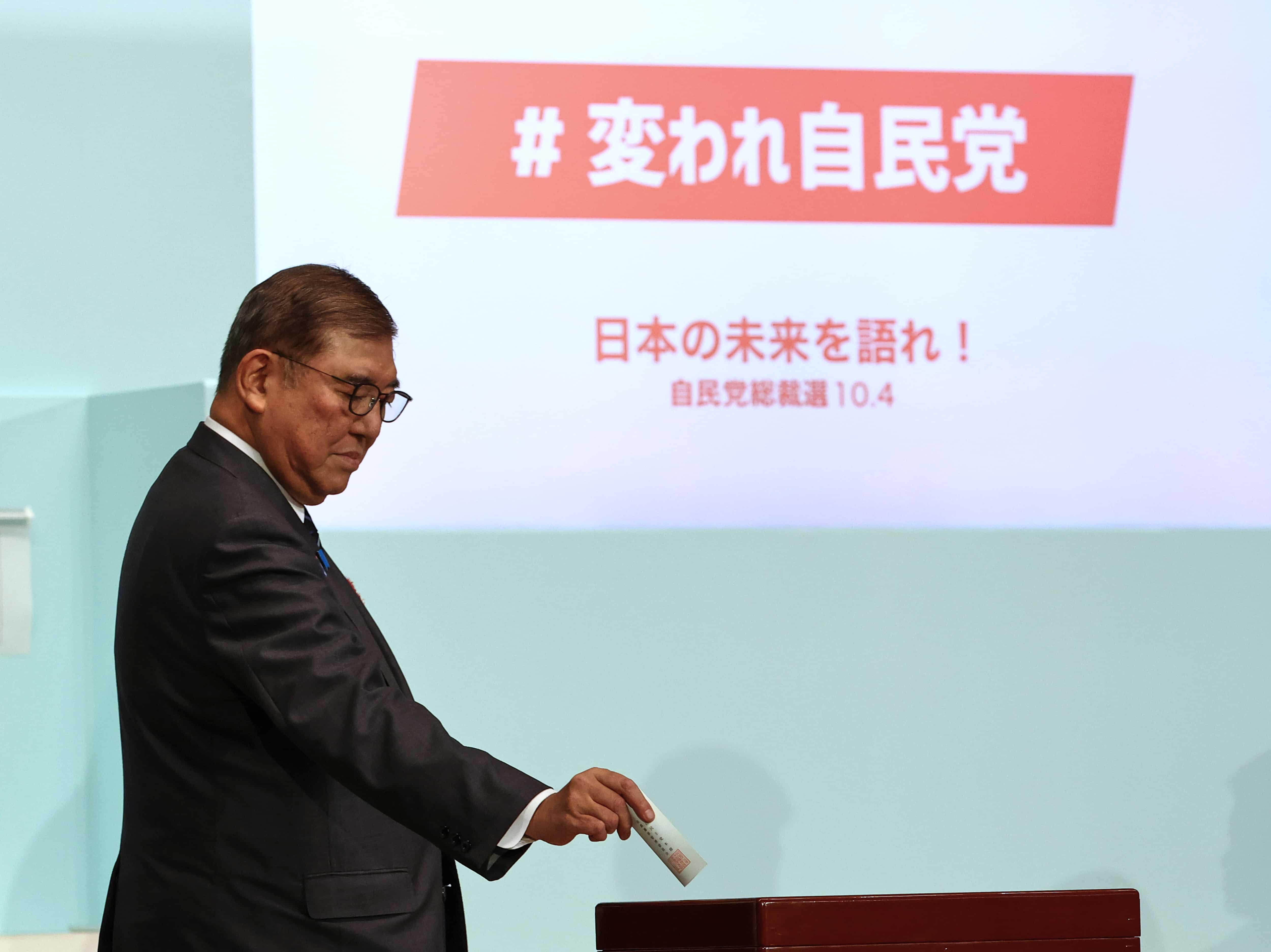 Japan’s Prime Minister Shigeru Ishiba votes at the Liberal Democratic Party’s (LDP) leade rship election in Tokyo, Japan, Oct 4, 2025. (PHOTO / AP)