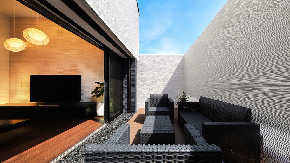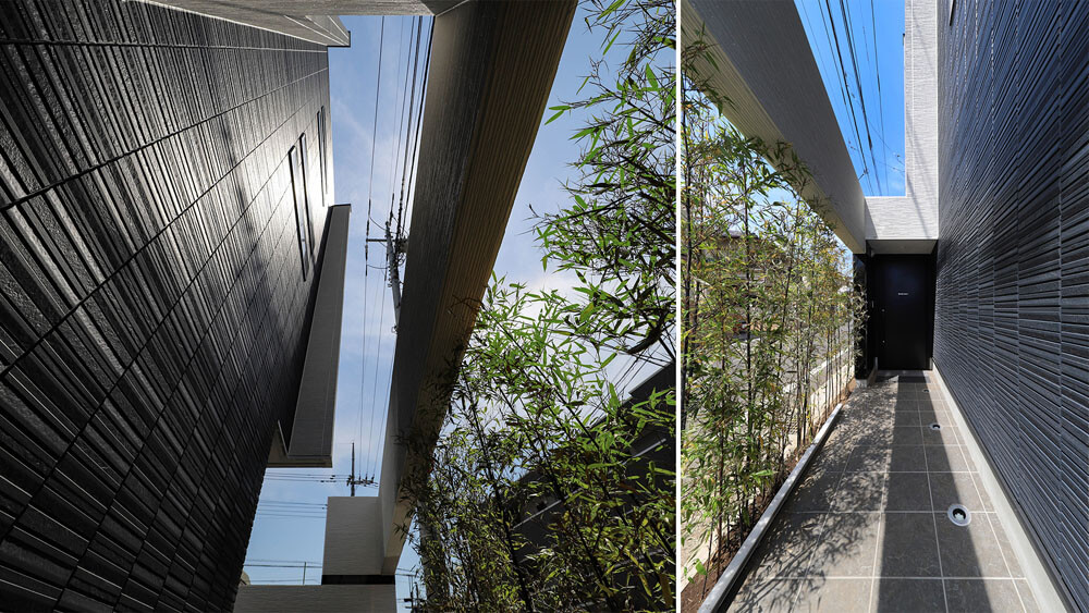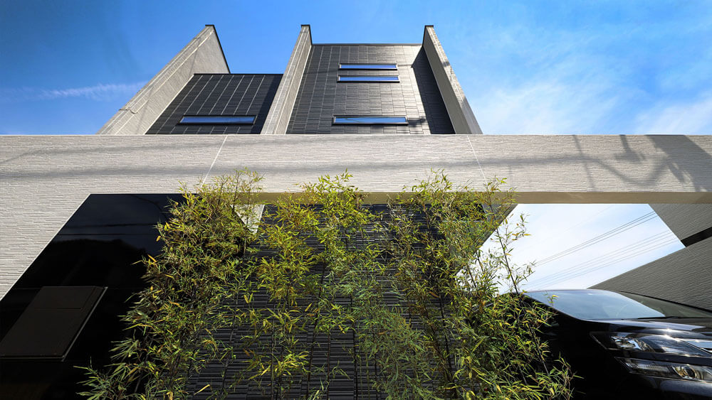 We reflected Japan’s strict height regulations for buildings in the facade design and achieved a cool and remarkable design, turning adversity into advantage. We planted black bamboo in a row on the approach to the front door and casted light upwards for the purpose of adding the essence of classical Japanese style. This staging created a great ambience. Siding panels textured with deep shadow lines were chosen for the outer walls.