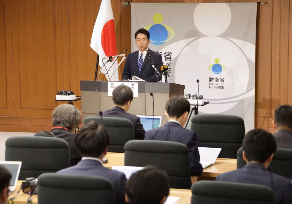 New Minister of Defense Shinjiro Koizumi holds a press conference after taking office on October 22. (Pool photo)