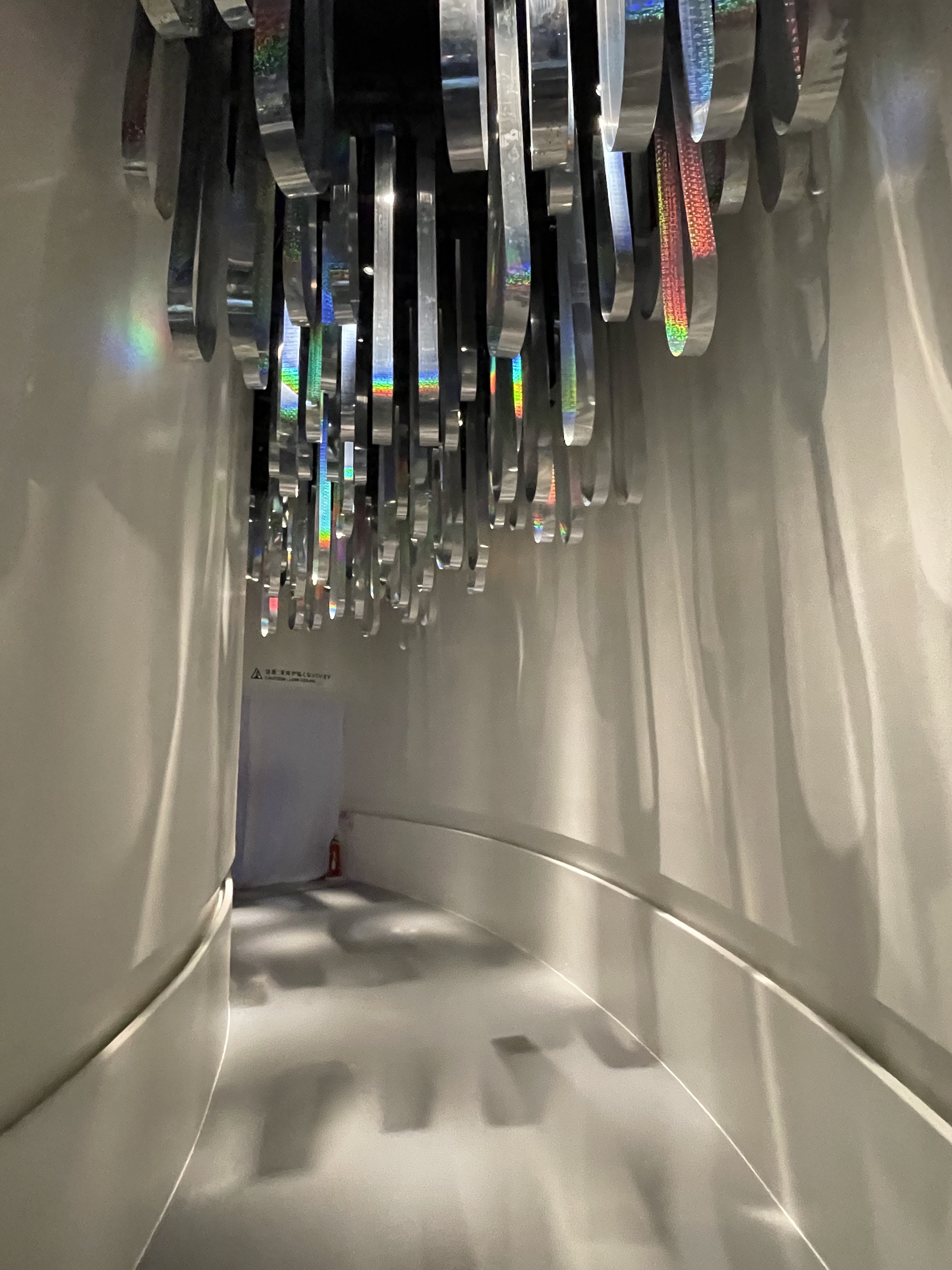 Wandering on, there are even sculptures of massive towering trees, or glimpses of what look like HDB blocks, butterflies and hanging vines. Yet, all these are white, and seem to suggest that it is yet to be coloured in and fulfilled, while screens continue to paint and play images of green parks. Our walk eventually leads us to Zul Mahmod’s ‘Whispers In The Void’, an immersive sound installation featuring motorised music boxes suspended from the ceiling to resemble shimmering clouds. It is a soft, ethereal soundscape that accompanies us, as if ascending above the canopy, moving away from the real to the surreal, before reaching our next destination.