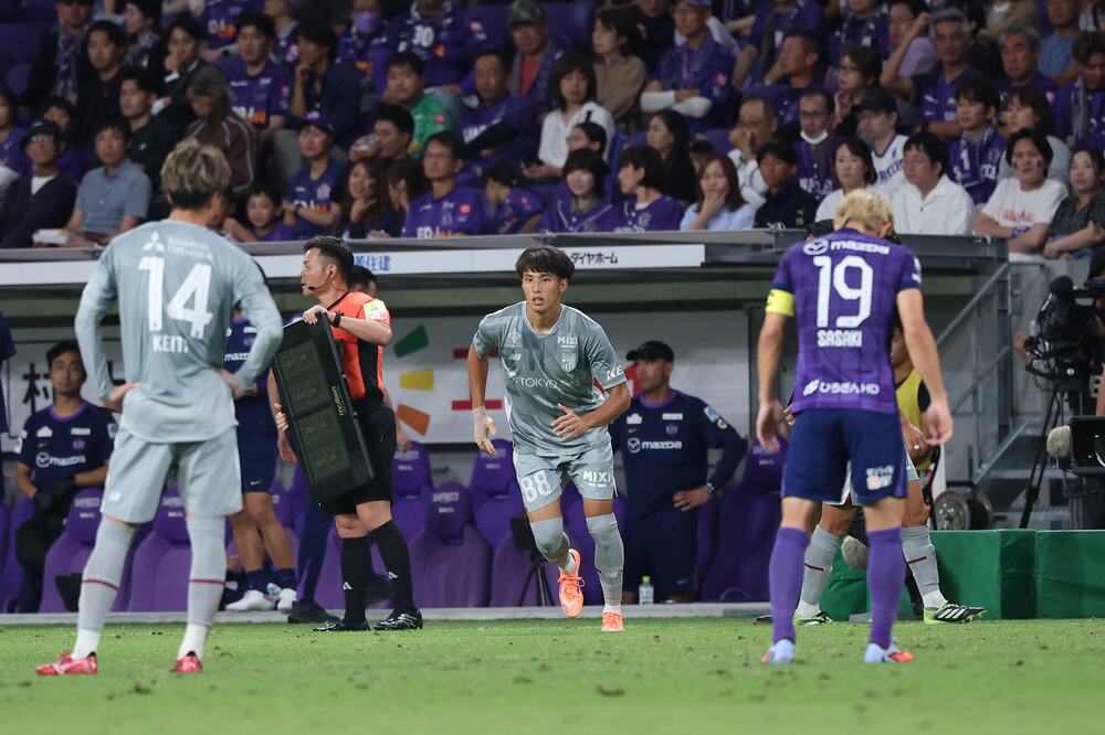 Although he played for only 10 minutes, he showed confident play and delicate ball touches, fearlessly challenging the strong center-back line of Hiroshima, including Araki, who has been selected for the Japan national team, and Kim Ju-sung of the South Korea national team. His fearless approach to the ball surely brought new hope to FC Tokyo’s fans and supporters.