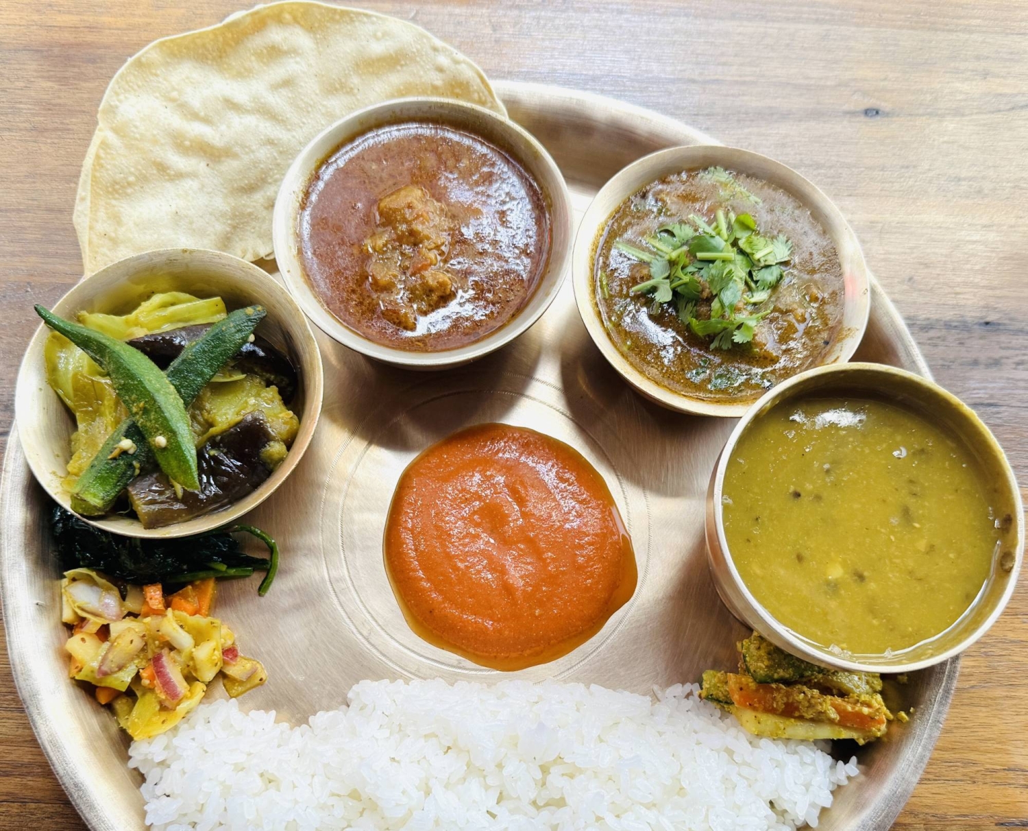 Born in Gorkha, the district from which the eponymous Gurkha soldiers originate, Devkota grew up in Jarang, a village in Gandaki Province. In his household, his mother and grandmother made dal bhat tarkari (often simply known as dal bhat) — a traditional, nutritious Nepali meal and an Everest base camp favorite consisting of rice and lentils stewed with spices and side dishes of vegetables, all served on a round thali platter. Their version was light on chili and garlic, a choice that reflected their Brahmin caste, which tended to eschew ingredients that were considered “impure.”