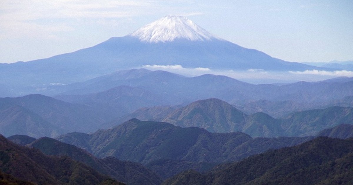 A snowcapped Mount Fuji is seen from the summit of Mount To in Kanagawa Prefecture, Oct. 23, 2025. (Mainichi/Naoki Watanabe)