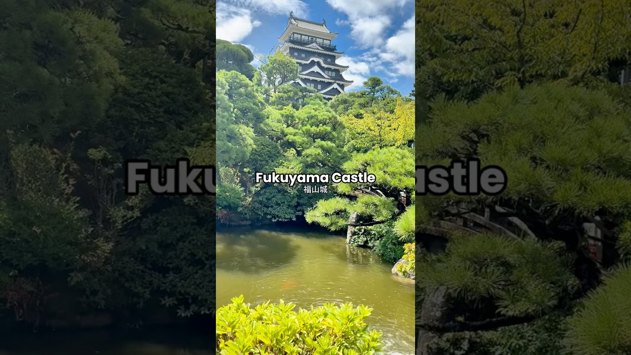 Have you ever seen a black Japanese castle? Most castles in Japan are white, but Fukuyama Castle is different. One whole side is black. It’s covered with iron plates. This design was for defense against cannons, black walls, plus green garden. Stunning contrast. Fukuyama Castle. Not just beautiful, unexpected.