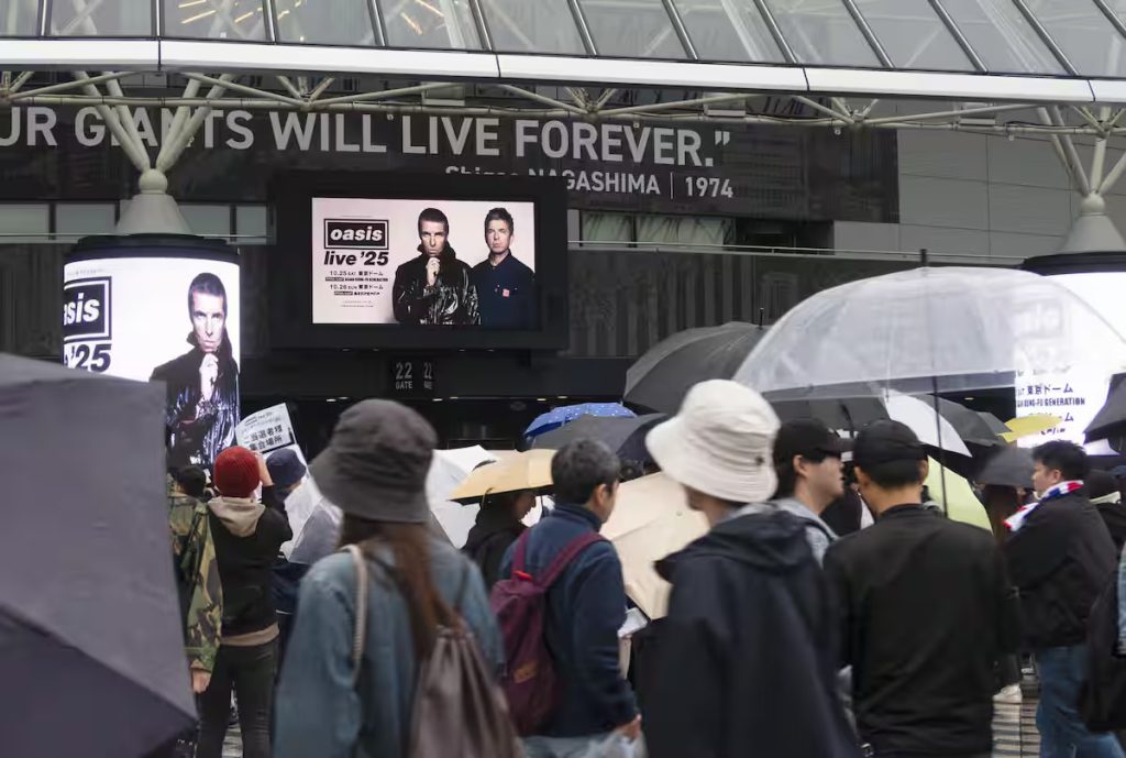 The British rock band Oasis, one of the most successful acts in the Britpop genre, performed at Tokyo Dome on October 25, drawing around 50,000 fans. Part of their reunion tour, which has been causing a global sensation, this marked their first concert in Japan in 16 years since their breakup in 2009. A second show on October 26 brought the total audience to over 100,000.