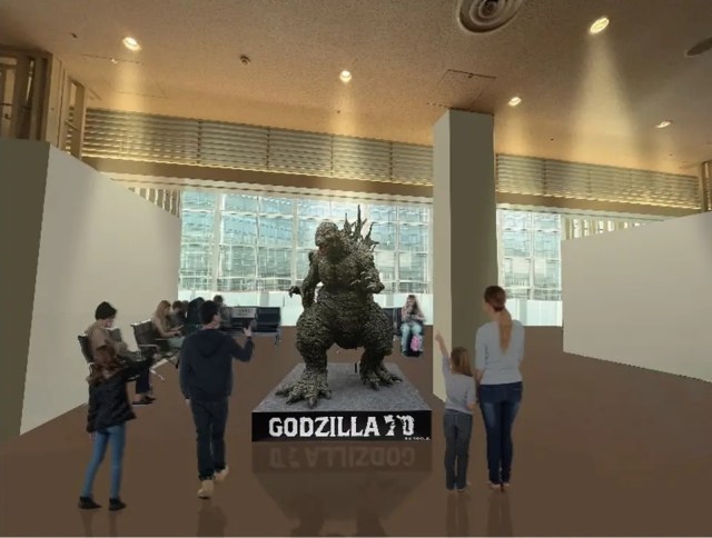 A more moderately sized Godzilla statue, this one explicitly based on the Minus One design, will be standing in the second-floor arrival lobby, and the floor’s information desk will have illustrations of some of Japanese cinema history’s greatest kaiju above it.