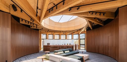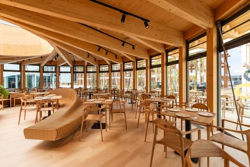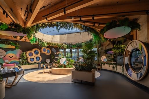 Designed by a team spanning LAVA – Laboratory for Visionary Architecture, facts and fiction, and landscape by Henning Larsen, the Germany Pavilion was titled ‘Wa! Germany.’ In Japanese, ‘wa’ has three meanings: circularity, harmony, and an expression of wonder. The design of the pavilion seeks to showcase the potential of circular and sustainable construction, consisting of seven round structural elements made of wood. The scheme was awarded a Sustainability Award at the expo.