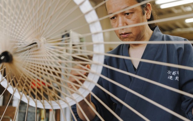 That’s what makes these umbrellas so appealing, » says the owner of Hiyoshiya Co., Ltd., the only manufacturer of Kyo-wagasa (traditional Japanese umbrellas made in Kyoto).