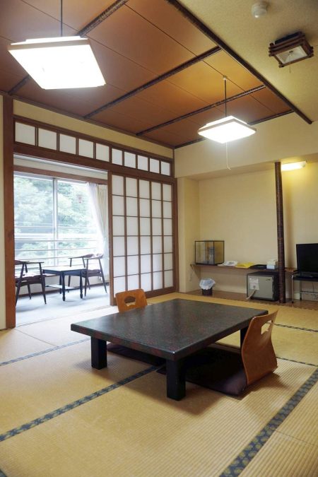 The areas that get close attention are the locations of the bathing areas. There are two bathing areas at the inn. One is a big bath area where men and women bathe separately, and the other, called Nyu-no-yu, is a private bath. Both are located near the sources of the hot spring water to prevent gases containing radioactive elements from leaking after mixing with the outside air. The Nyu-no-yu bath is perfectly positioned, as the bathtub is located directly above one of the sources of hot spring water.