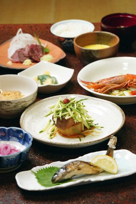 Soon after returning to my guest room, the dinner set was brought in. Tsugane said modestly, “Because we change the menu every day, there are no specialty items among the dishes.”However, the home-cooked dishes rich in vegetables were just the right amount and presented beautifully, so the meal was satisfactory to me.