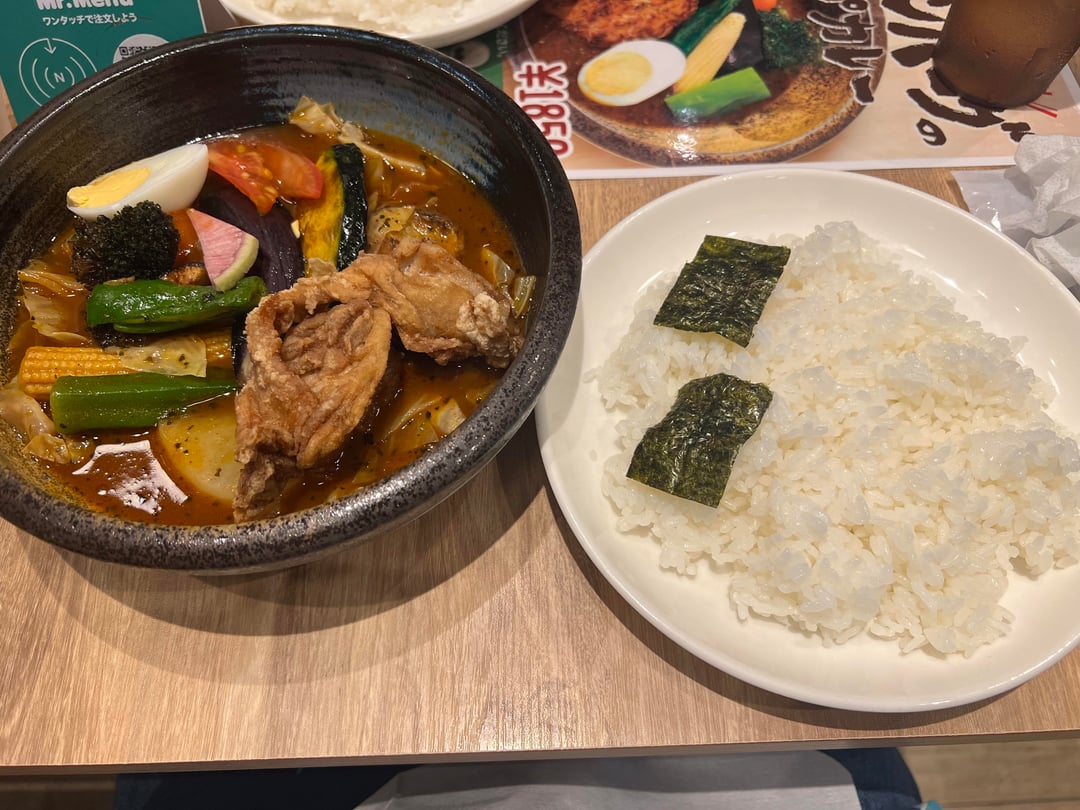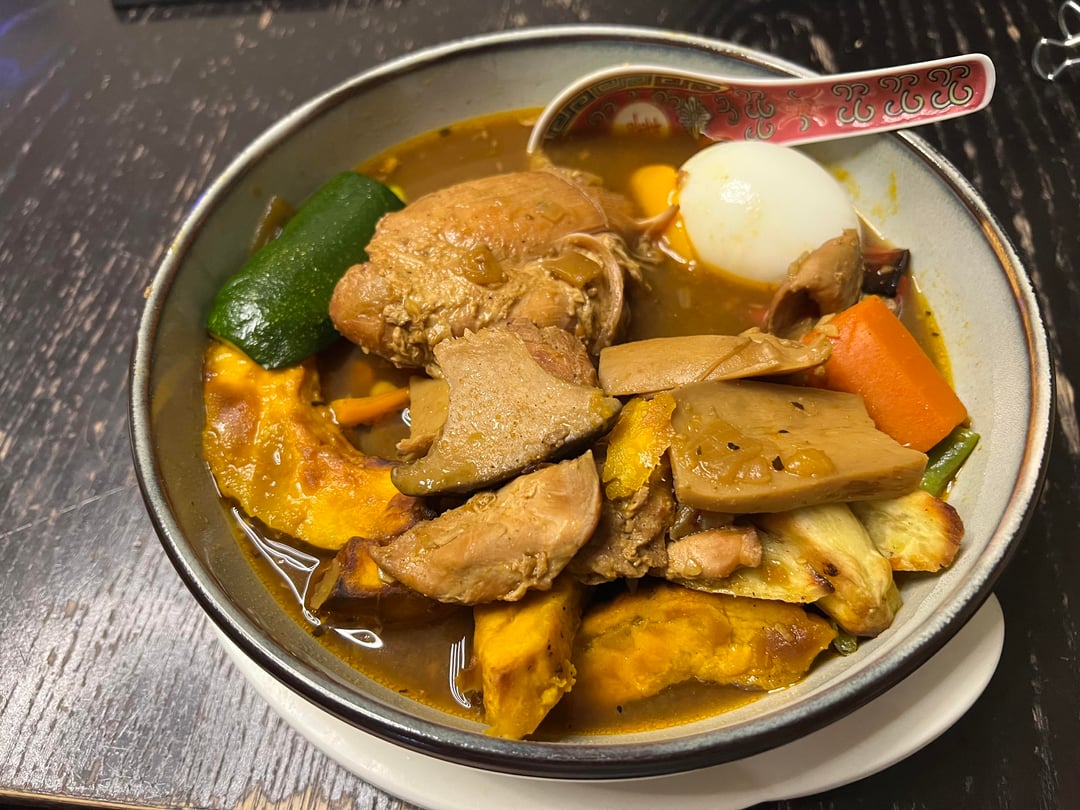 Photo 2 / 3: Curry shokudo Cocoro in Akihabara, Hokkaido style soup curry (they are a participant in the 2025 Kanda curry rally) – very decent/excellent.